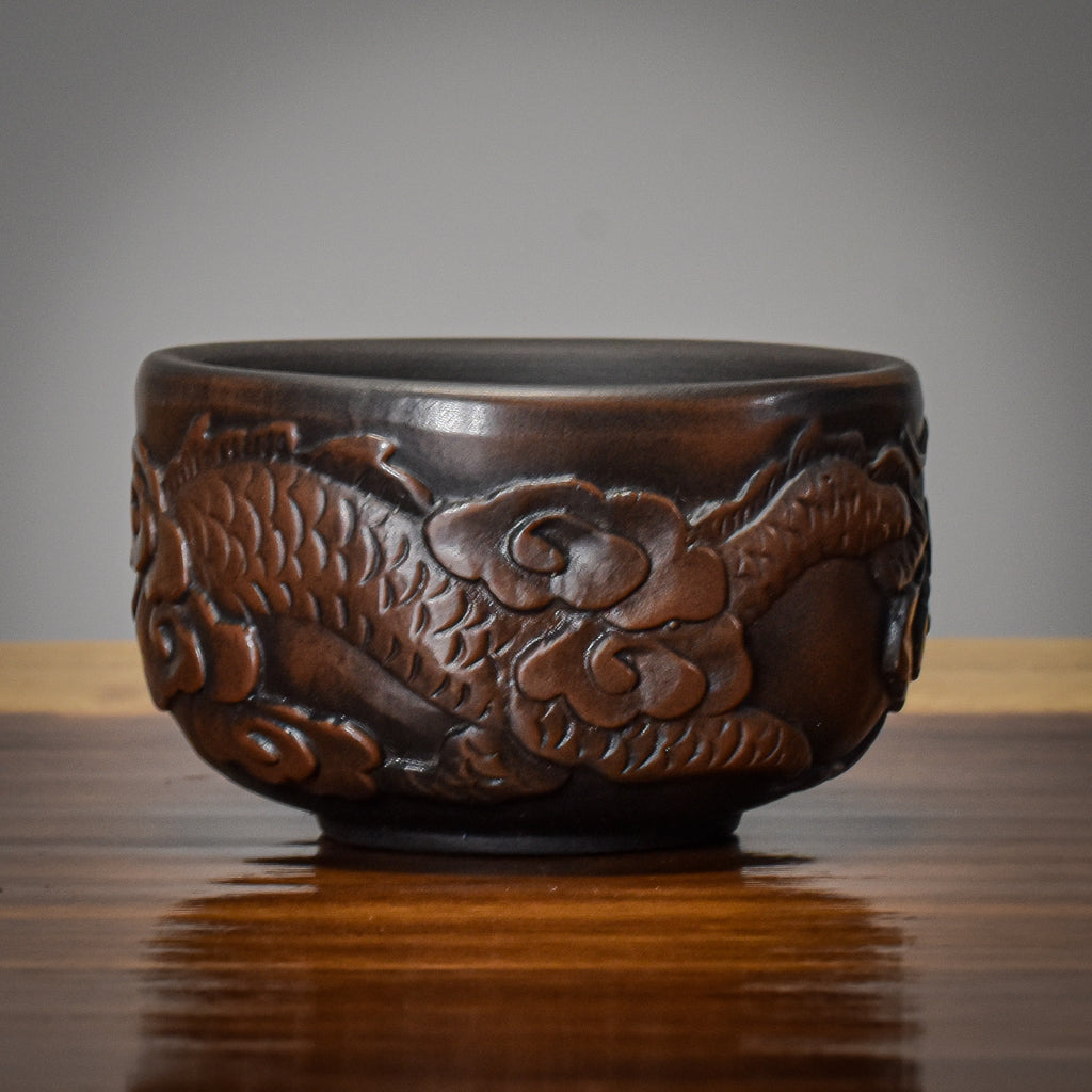 These are really cool little tea cups. Who doesn't love dragons? They look great and offer the advantage of drinking your tea in Jianshui clay. These teacups are machine cast but were polished by hand. Read more about Jianshui here. These are made from quality clay that is single fired and unglazed.