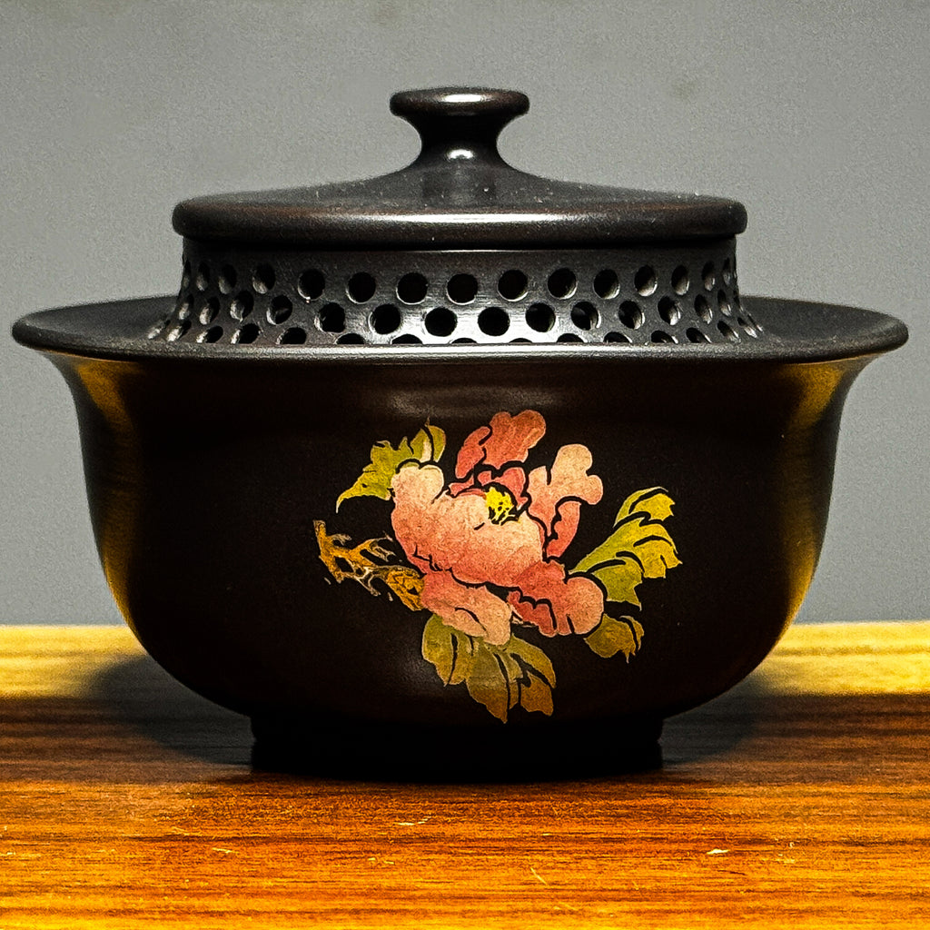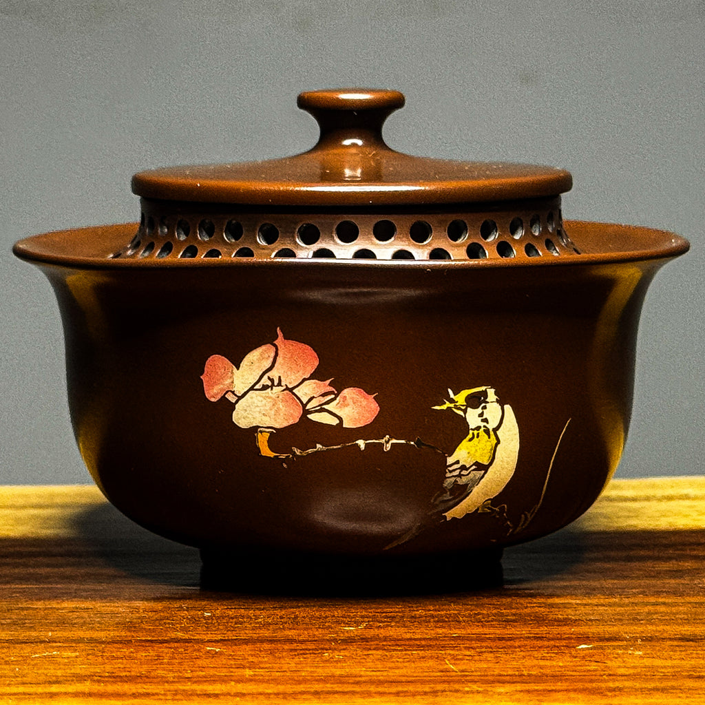 We love brewing in Jianshui clay and we love the simplicity of easy gaiwans. An easy gaiwan is like a regular gaiwan but easier to use. The lid doesn't slide off so your manual dexterity doesn't need to be as precise. The holes allow the tea leaves to be filtered automatically. They are a lot of fun to use. They are also super easy to clean!