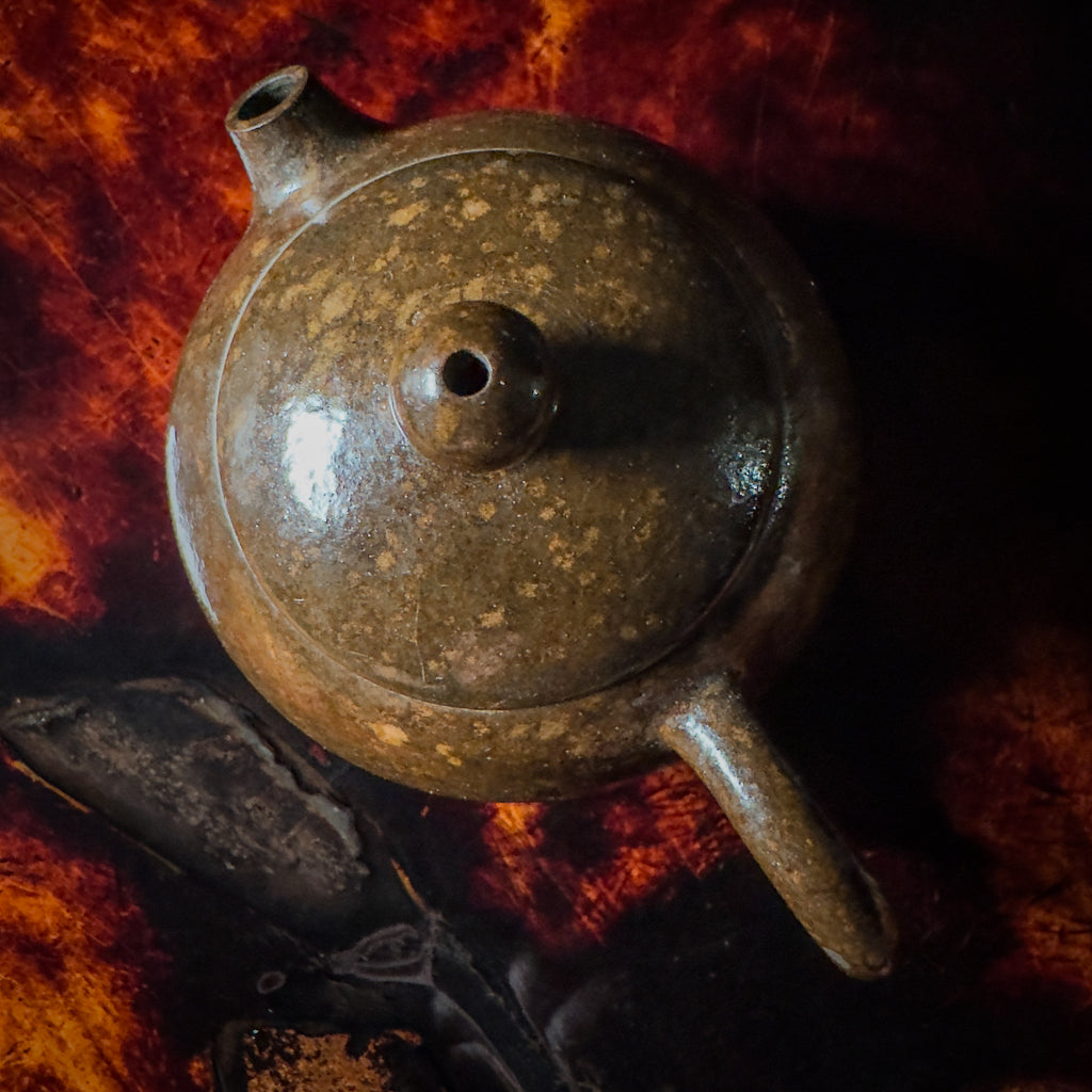 This teapot was wood fired in a kiln in Jianshui for 7 days. This teapot was fired in the same batch, same kiln, as our wood fired teacups. This teapot is thick walled and high fired. It pours fast and easy. It measures approximately 120ml in volume.
