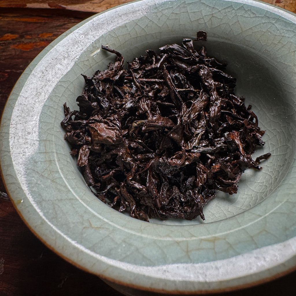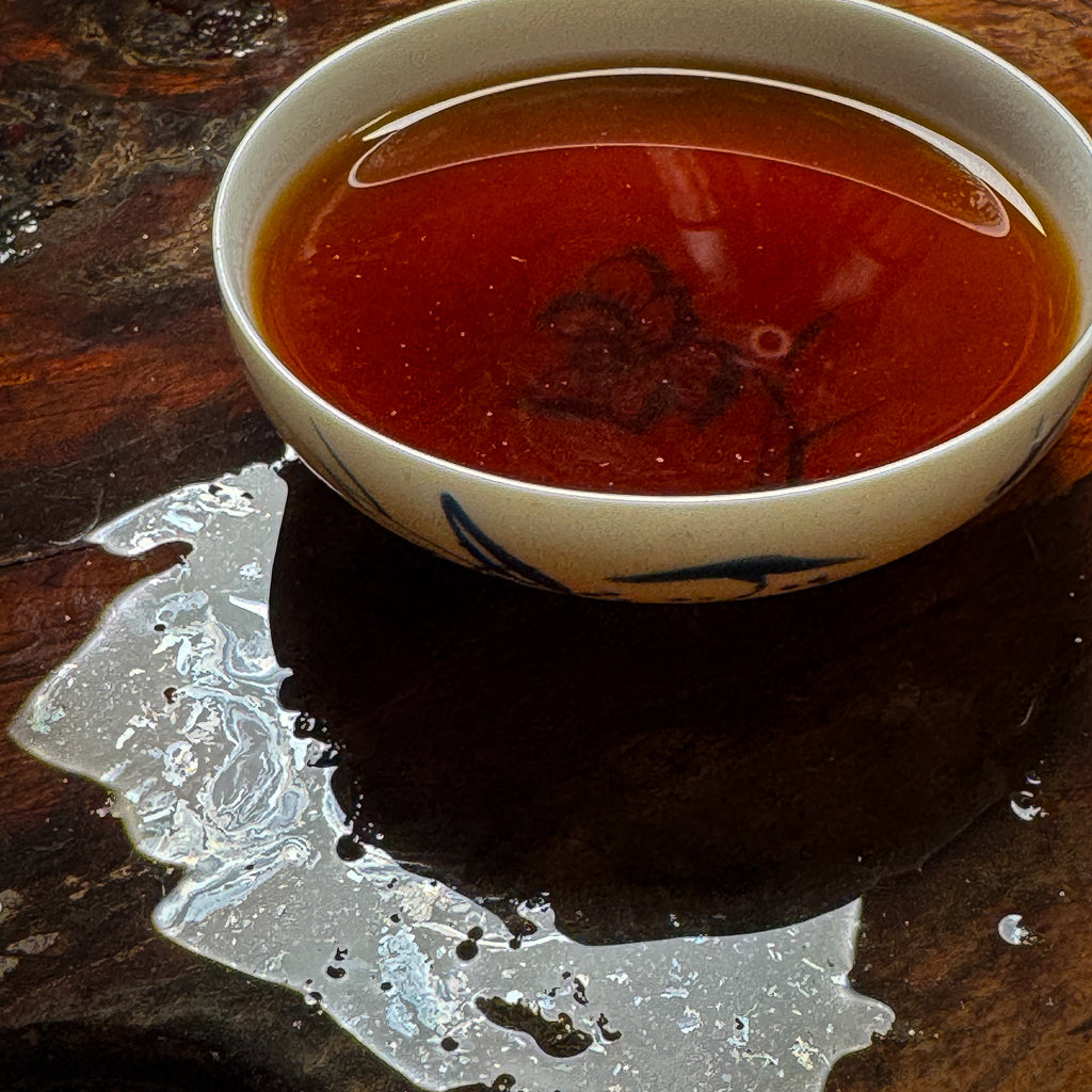 This tea presents a forward herbal appearance. It is a very clean brewing shou with a delicate bitterness and a very sweet. smooth, and relaxing flavor. It's a very slippery and viscous tea. It doesn't brew super dark and dank. It has a reserved elegance. It has a very mellow energy.