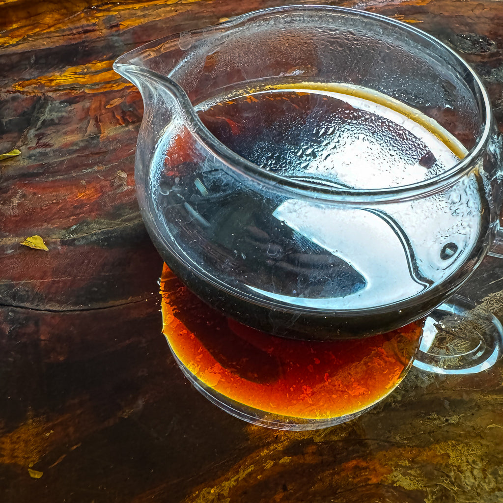 This is a special shou. Yiwu shou puerh teas are in a class of their own already, but this one really hooked us from the first session. We could not help but noticing a specific and unique soda style effervescence that reminded us of sarsparilla or root beer. We've never had a tea like that before.