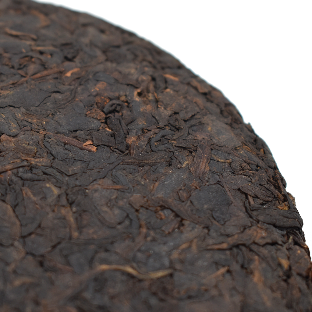 This is a very interesting shou puerh made with purple bud leaf material. The leaves come from trees that are a naturally occurring varietal the produces a darker leaf color. This material was picked in 2012. The wet pile fermentation (wodui) was done a year later and then allowed to rest another year before it was finally pressed in late 2014. It was stored in Puer City until recently.