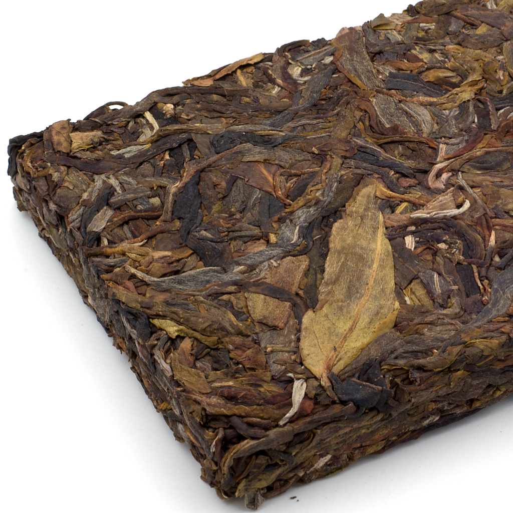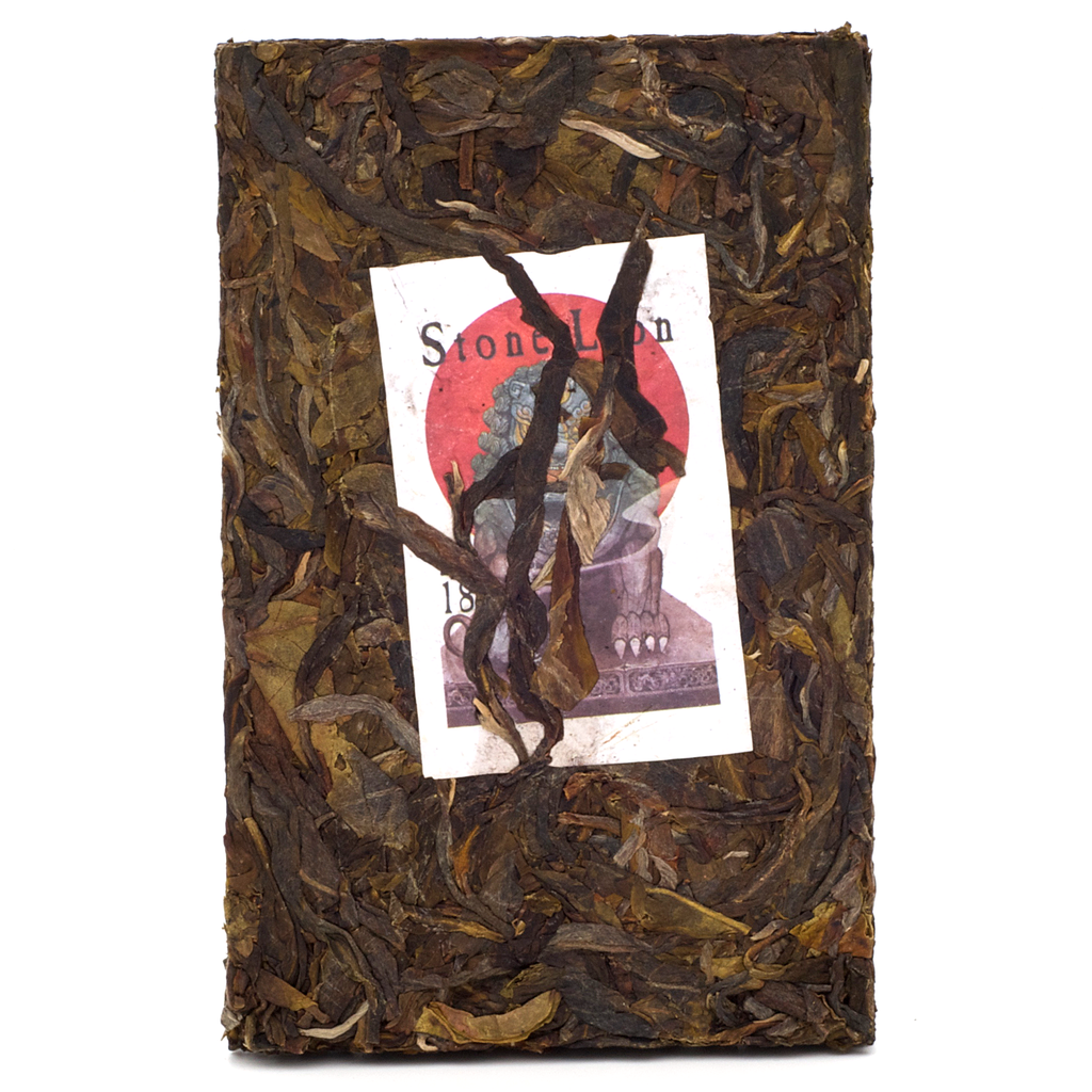 Bold, brash, heavy handed, and unapologetic; this tea does not mess around. This 200g brick is 100% Lao Man'E, first Spring picking, old tree, huang pian material. Lao Man'E is known for very aggressive puerh. They actually have two varietals Extra Aggressive and Less Aggressive. This tea is "Less Aggressive". That means that it will eventually get sweet. The steeps until then are a lot of fun if you like bold, bitter teas. Since this is huang pian material the edge is taken off but it still packs a punch. This is honestly a very pleasant tea. It will brew for many steeps and reward your patience with endless sweetness. Stone Lion may be a pussycat underneath that rough exterior.