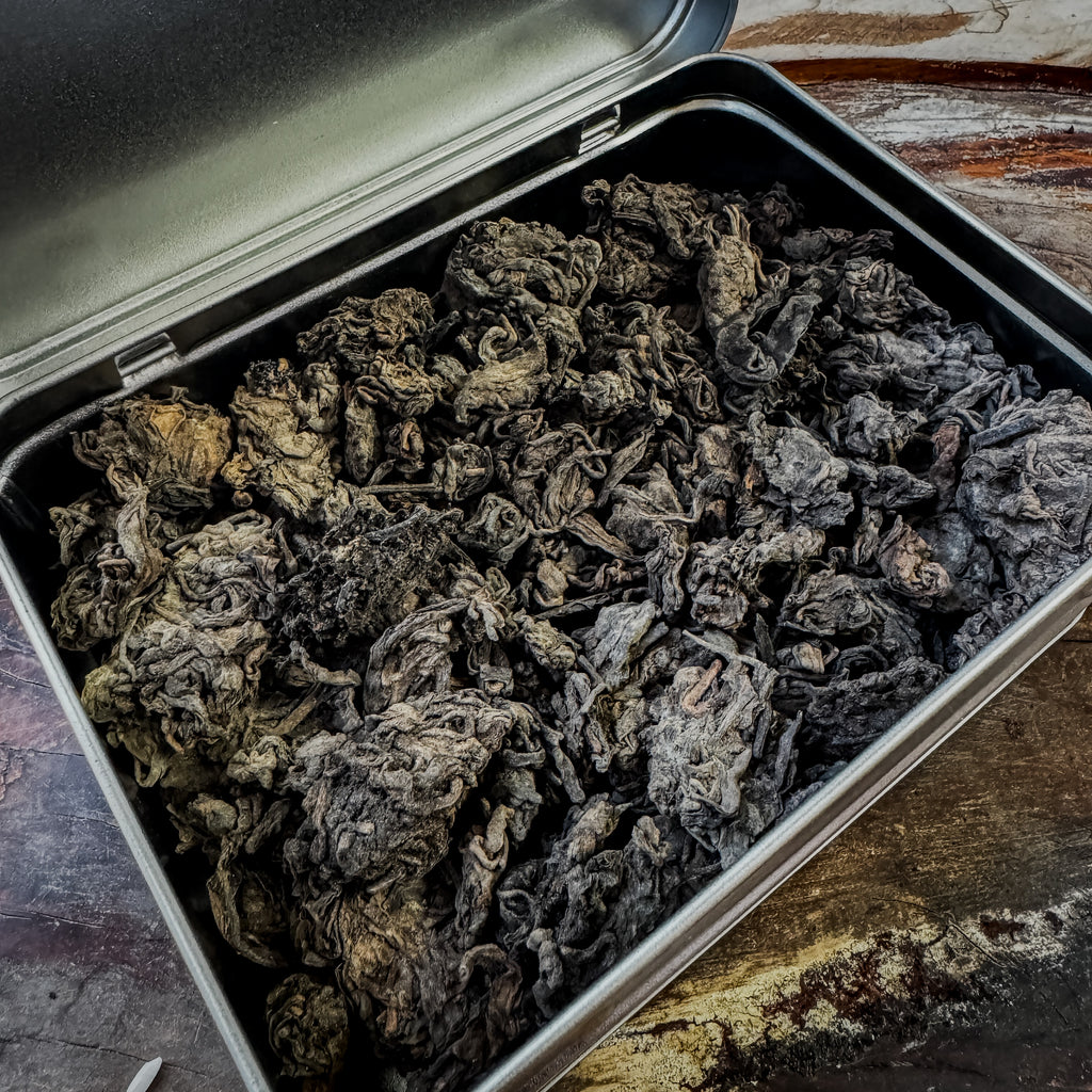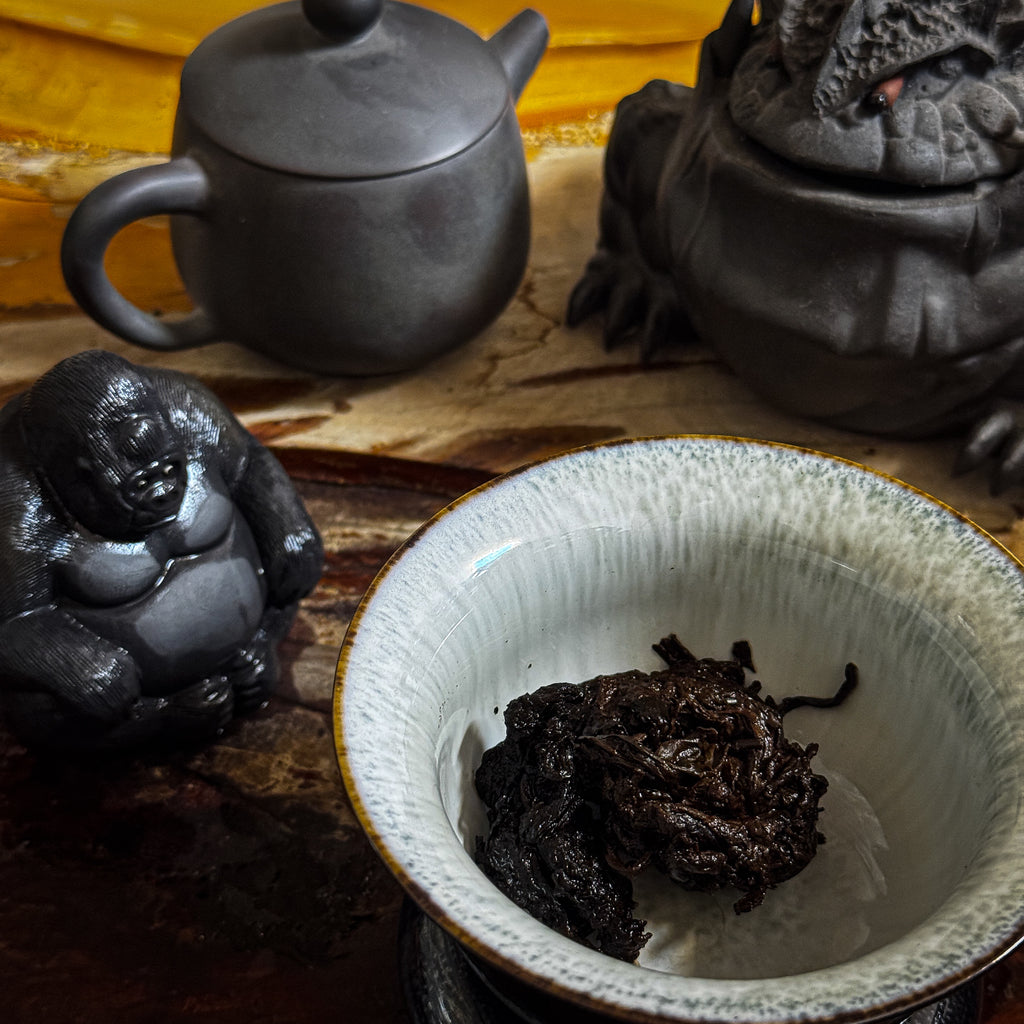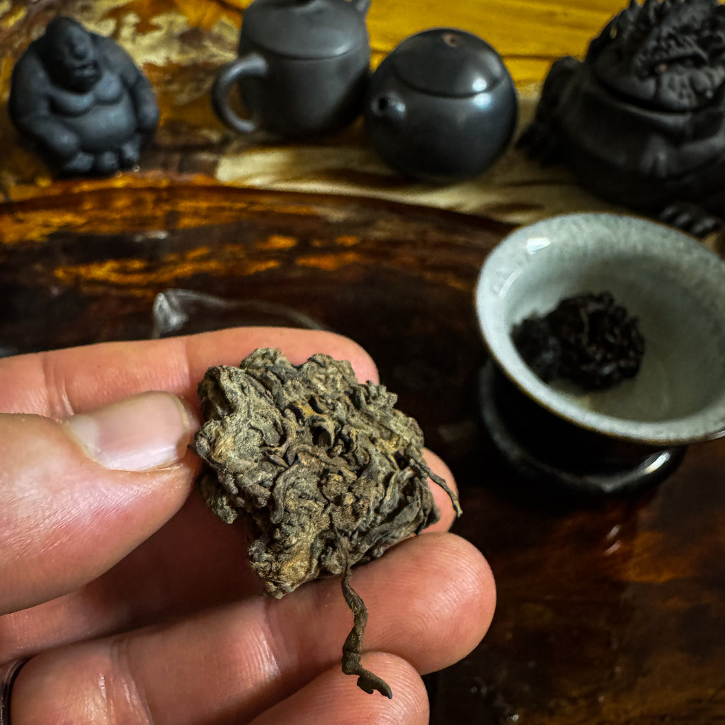 Here at Crimson Lotus Tea we LOVE Lao Cha Tou. If you are craving some chunky nugs of tea these will absolutely not disappoint. These nugs are special. They came from the same fermentation pile that produced our Yiwu Shousparilla tea. I wouldn't call these a beginner shou. These chunky nugs are funky. They are straight out of the pile and look it. They are dirty and funky.