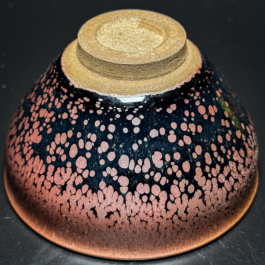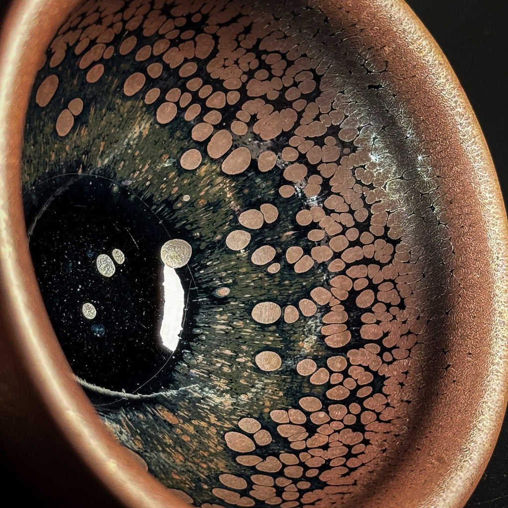 The glaze used in this cup was blended by hand from the old Jianzhan glaze sources in Fujian. The glaze isn't available anymore. The modern cups just can't compete. These were wood fired 20 years ago in a traditional dragon kiln that has since been dismantled.