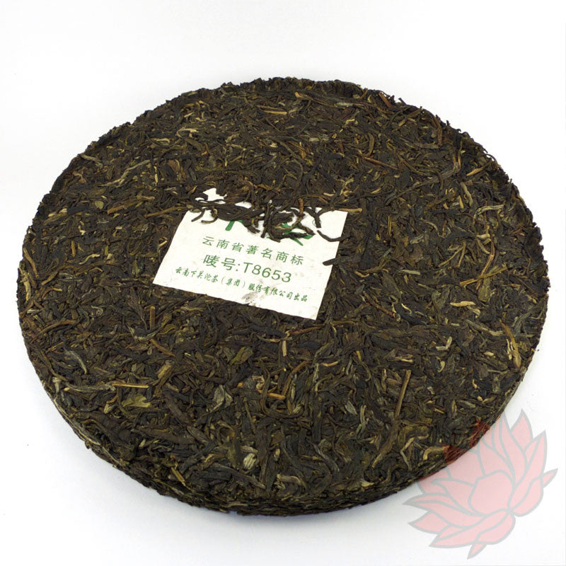 This sheng puerh cake is a classic blend and very popular in China. The "T" designation implies that it was heavily compressed and is called an "Iron Cake". Xiaguan Iron Cakes have a reliable reputation for long term aging.